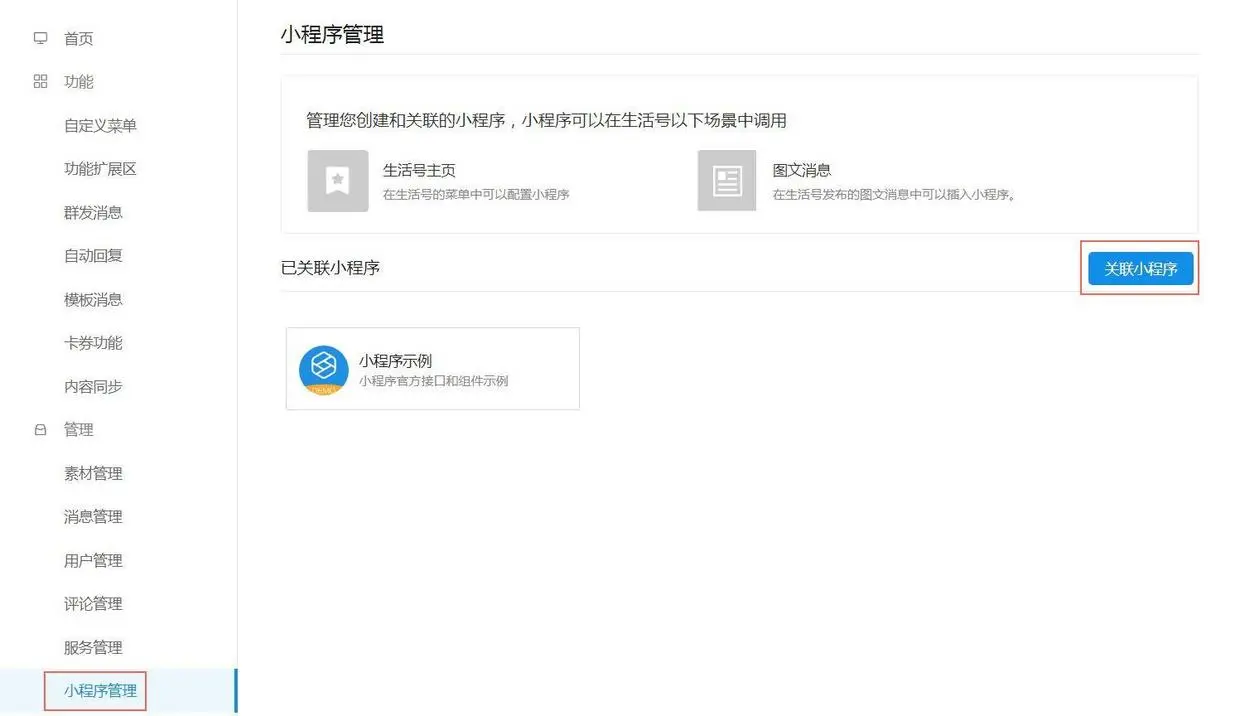 生活号关联小程序的规则