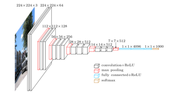 VGG16继承了alexnet的框架,但其通过加深卷积层数的方法获得了比AlexNet更高的图像识别率,是一种比AlexNet更深的网络结构,如下图所示,更详细的网络结构参数可以参考该论文。