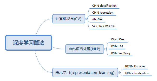 为此,我们将多个经典的深度学习算法和模型,融入到Jarvis算法库中,并通过Tesla平台给大家使用。目前Jarvis的深度学习类目,已经集成了9种不同算法,分布于如下3大类: