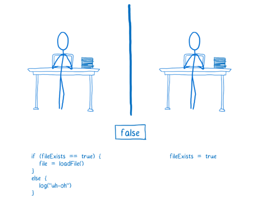 如果有两个线程使用同一个变量,那么就有可能产生竞争条件,这是最简单的情况。再具体点,假设一个线程要加载一个文件,而另一个线程要检查这个文件是否存在(译者注:这里应该是检查并设置存在标志位),它们会使用到同一个变量 fileExists 去通信