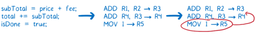 为了让这一切更加高效,很多编译器和 CPU 会记录好代码,找到不依赖 subTotal 或 total 的指令,然后移到两个指令之间