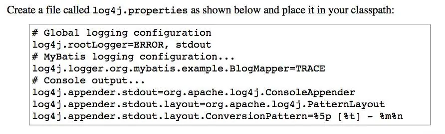 在此之前,我们还需要做点有用的事情,刚刚引用的lib中,有很多日志相关的jar包,为了我们程序以后测试起来方便查看日志,我们要建一个log4j.properties文件,同样在pdf中能找到如下内容
