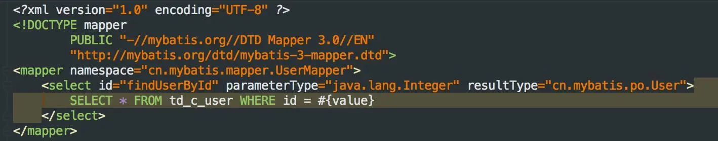 #{}是占位符,待会测试代码打出来的sql你会发现就是个?,其中的参数value表示要输入的参数,因为这边的parameterType是简单类型int,所以#{}中你可以填任意的参数名字。