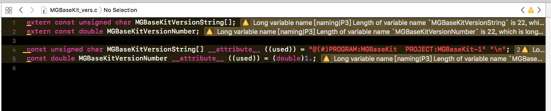 编译成功后Xcode上会在不符合规则的代码上显示Warning: