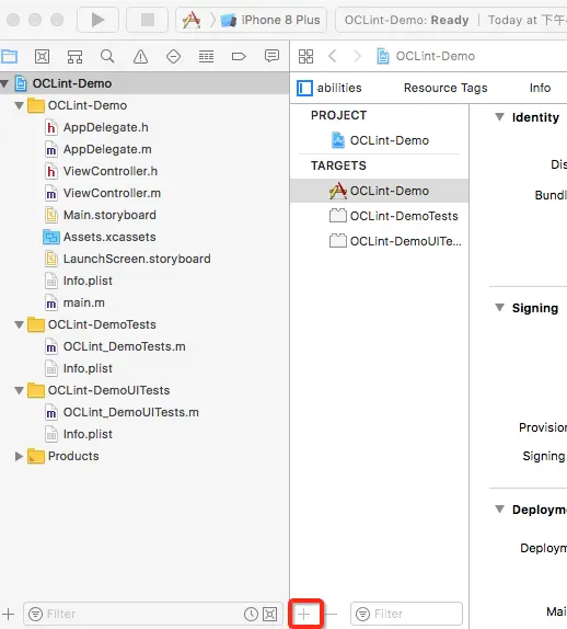 首先在targets点添加按钮:
