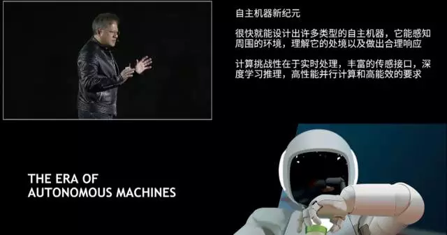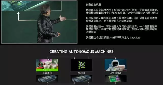 除此,他还展示了自动驾驶平台NVIDIA Drive,全球首款自主机器处理器Xavier;能够实时训练机器人的模拟环境 Isaac Lab。