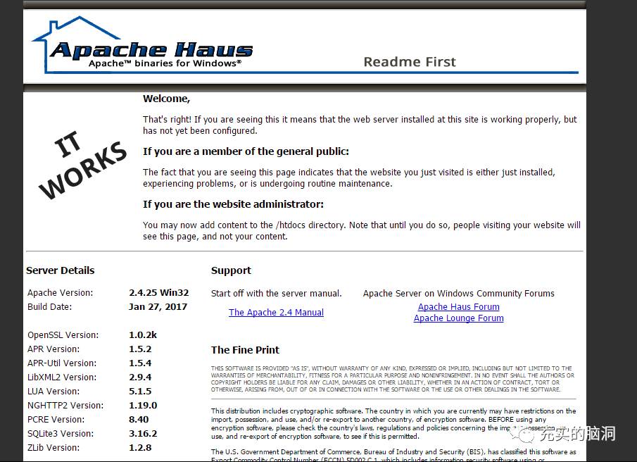 现在,Apache Web服务器已成功安装在你的计算机上。
