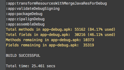 在项目中运行 ./gradlew assembleDebug 就会在 console 中输出: