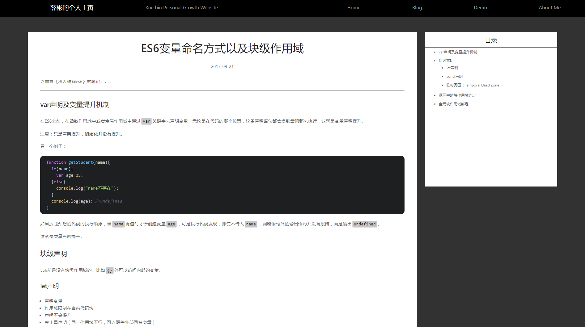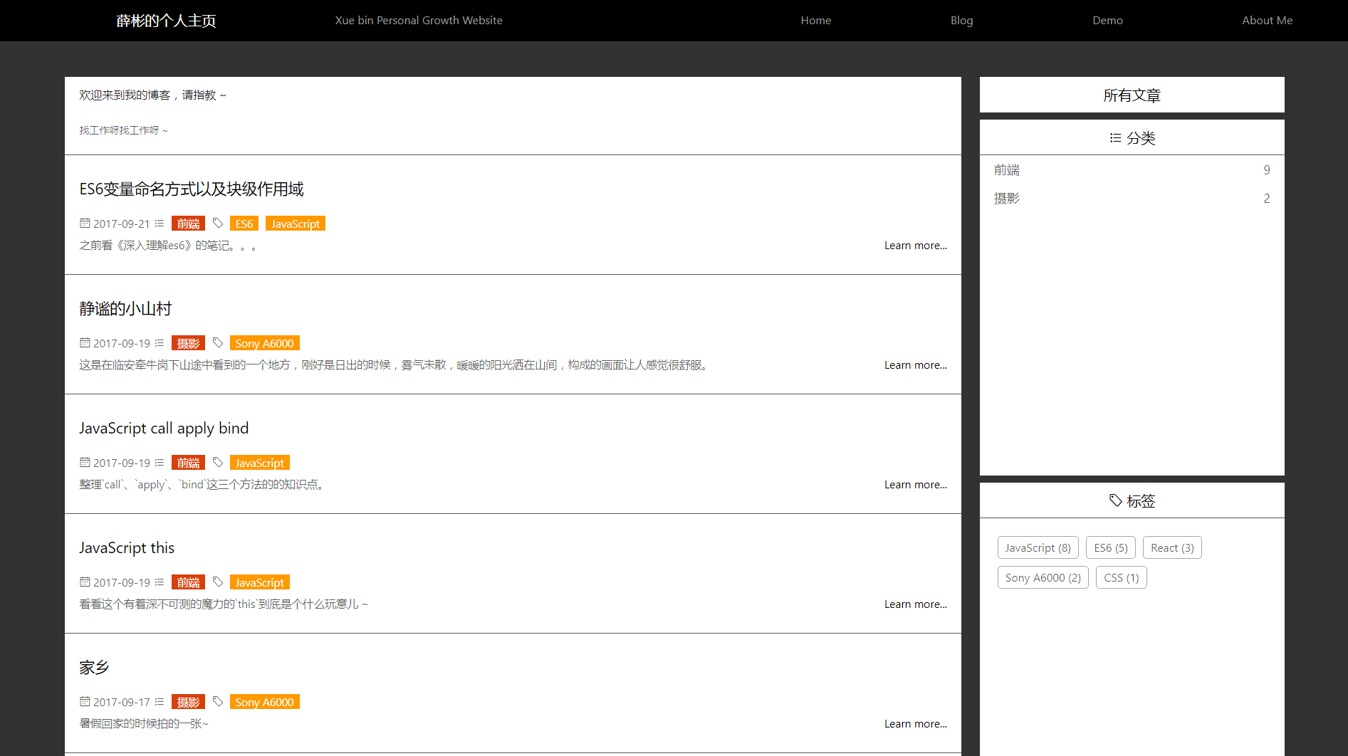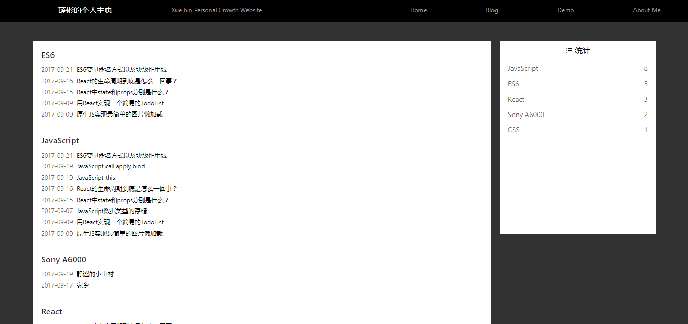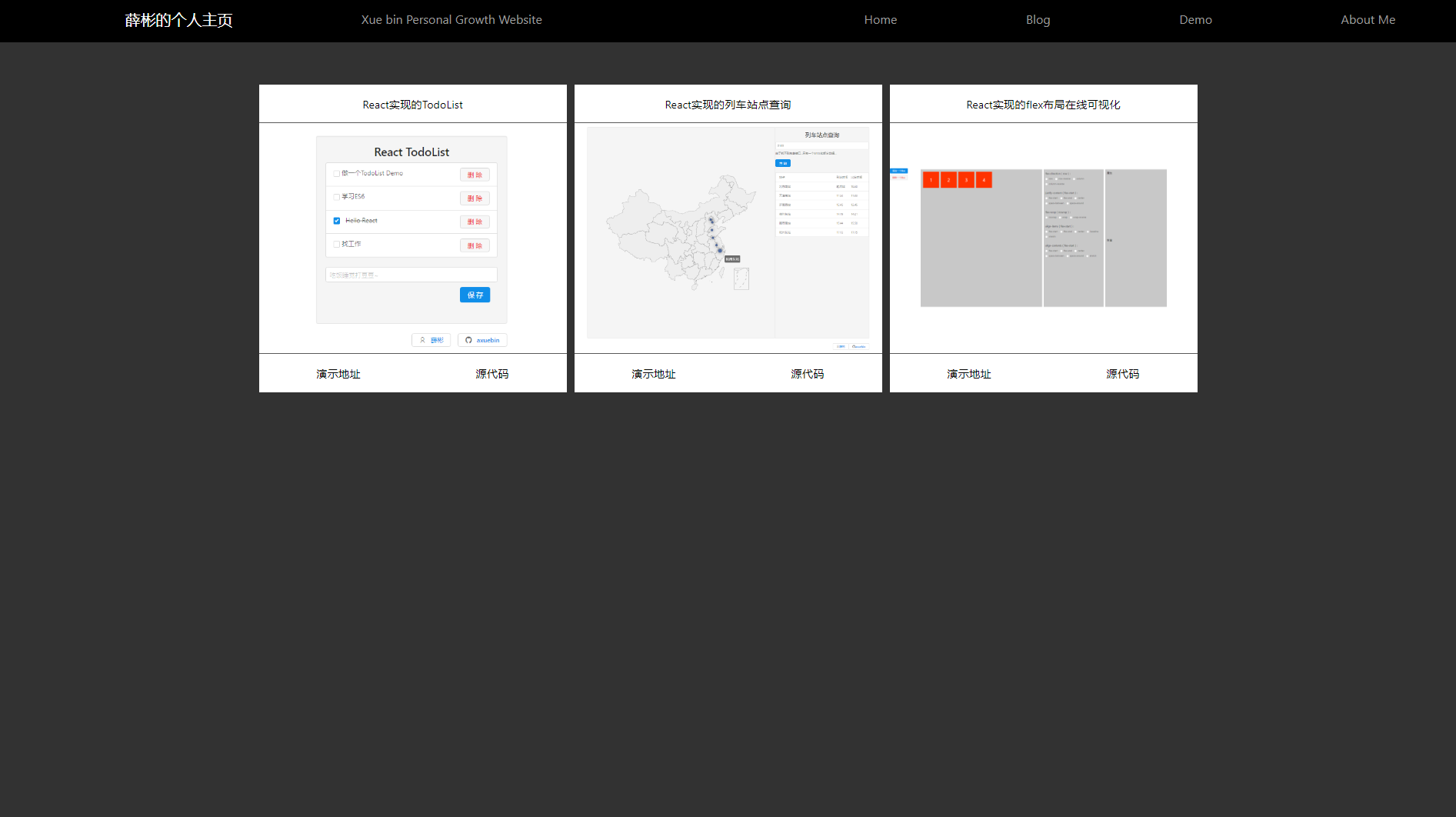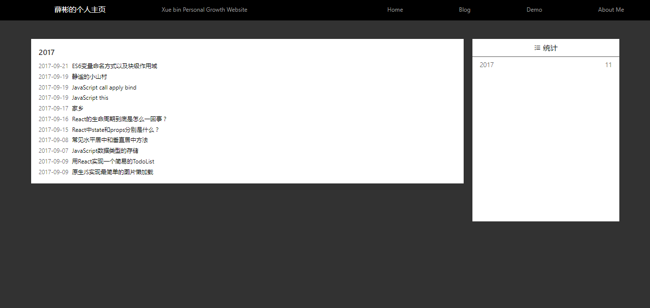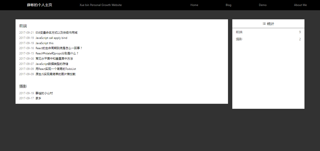 这个项目其实功能很简单,就是常见的主页、博客、demo、关于我等功能。