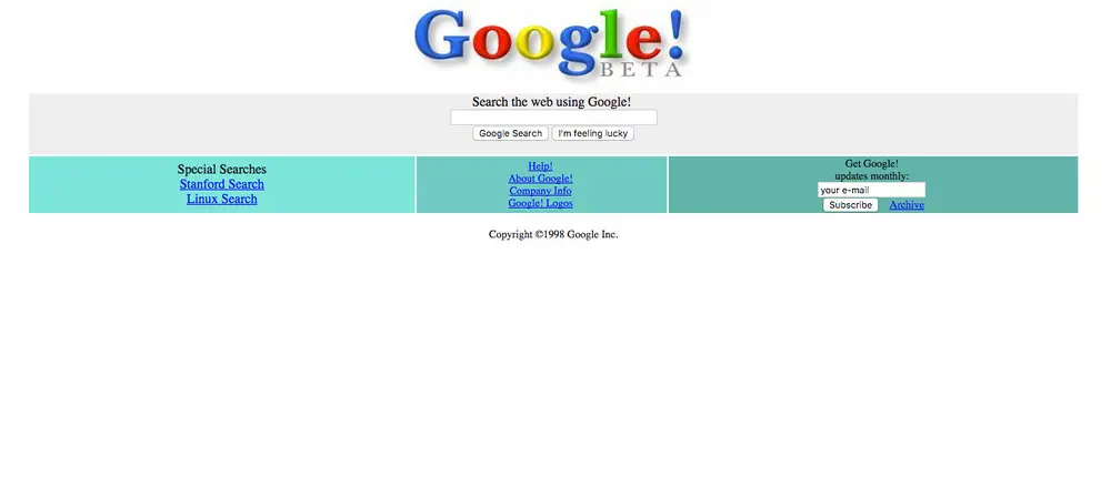 1998年年底的时候,Google的网站长这个样子。