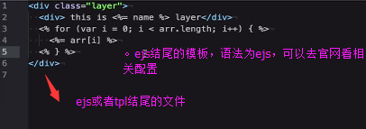 实际开发中,模板可能会用到一些模板语法。假设是以.ejs或者.tpl结尾的模板。ejs-loader相关的模板并且会返回给一个已经直接编译好的函数。