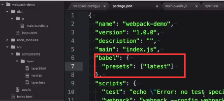 使用babel-loader来让webpack配置解析es6的js代码,转化成浏览器直接运行的js代码。