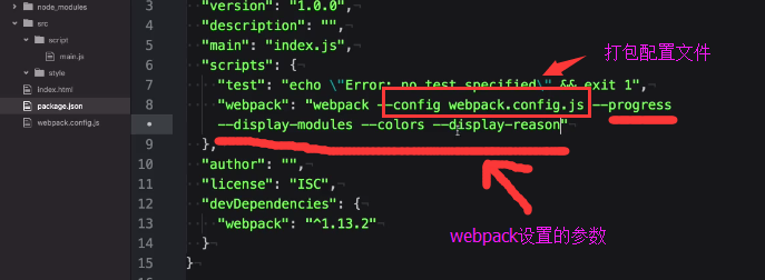 webpack指定打包配置文件 命令webpack --config webpack.dev.config.js