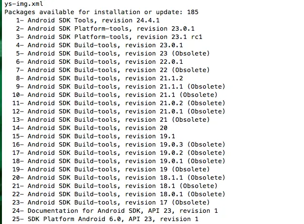 ./android list sdk --all这个目录就是列出所有的sdk,build-tools,source等文件,同样可能需要翻~~墙,下图为结果