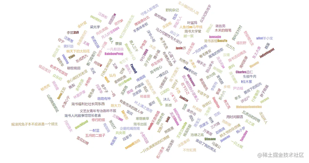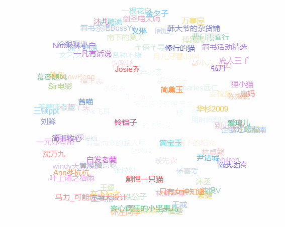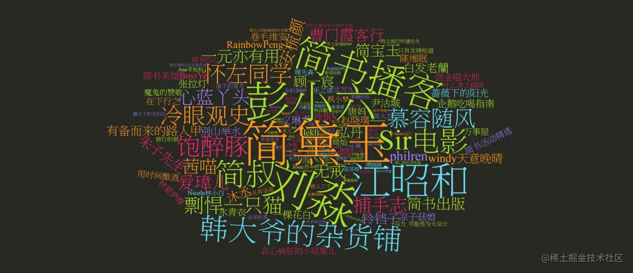 爬完数据后,开始检验成果,进行可视化,先将230名推荐作者“丢到”词云里,直观地看看都有哪些人: