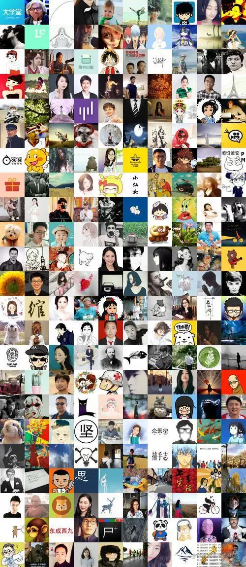 当然一直看这些作者的昵称其实还是不知道谁是谁,子曾经曰过:“无图无真相”,那么把所有作者的头像拼个图来看看,发现人像比重非常大啊,看来想成为推荐作者,必须要把头像换成帅气的自己才行,不说了,要去换头像了,不对,要去整容了,再见: