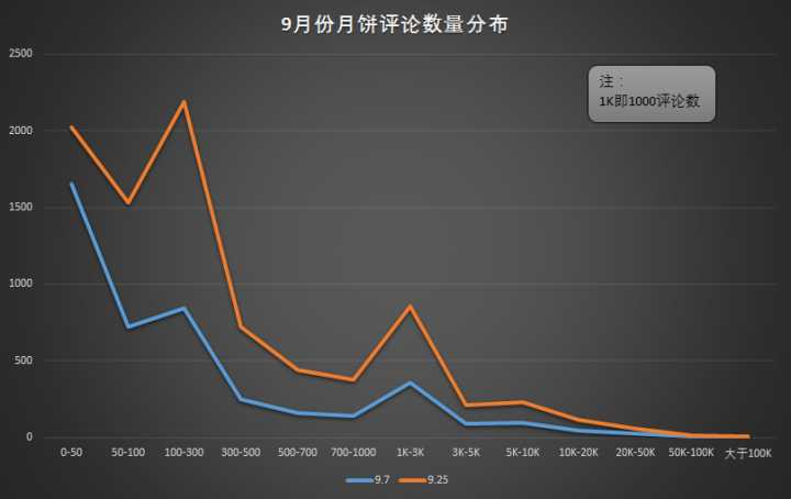 在0~40元和100~150元月饼销量可观,造数君大胆猜测:人们买0~40元的月饼是自己吃,100~150的月饼是用来送人。