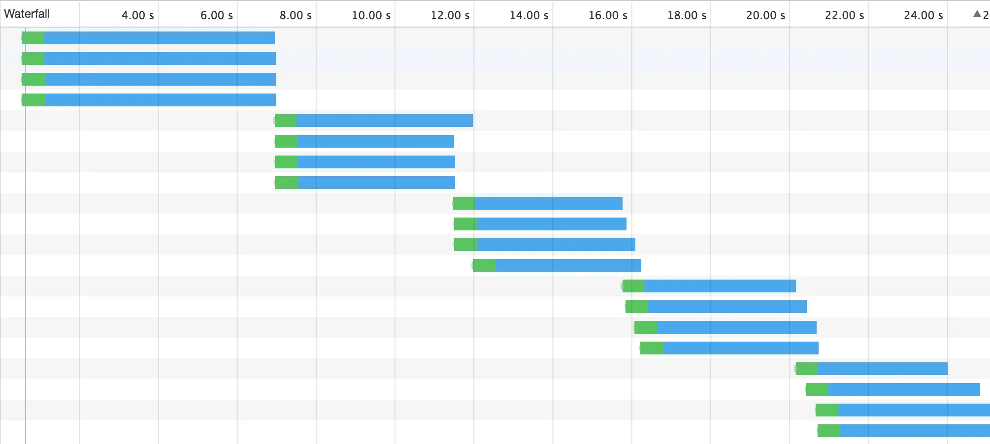 设定最大请求数为 5,Chrome 中请求加载的 timeline :