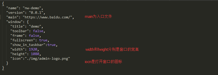 2、在nw的根目录新建一个package.json的配置文件
