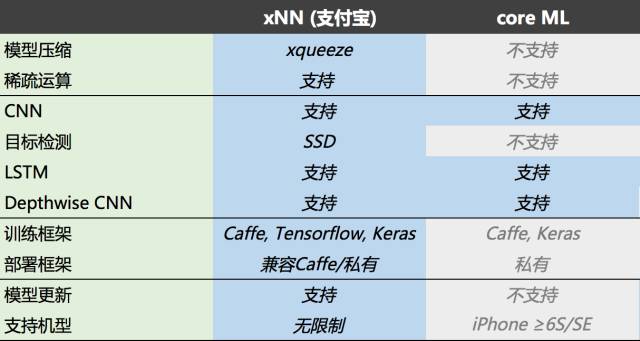 1. 机型跨度大:支付宝App拥有数亿受众群体,在其中落地的业务必须对尽可能多的用户、尽可能多的机型提供优质的体验。对支付宝来说,参考Core ML只将功能开放给少数高端机型的做法是不合适的。因而无论在运行速度和内存占用等性能指标、还是在兼容性上,支付宝的移动端DL都必须做到极致,才能最大幅度地降低使用门槛。