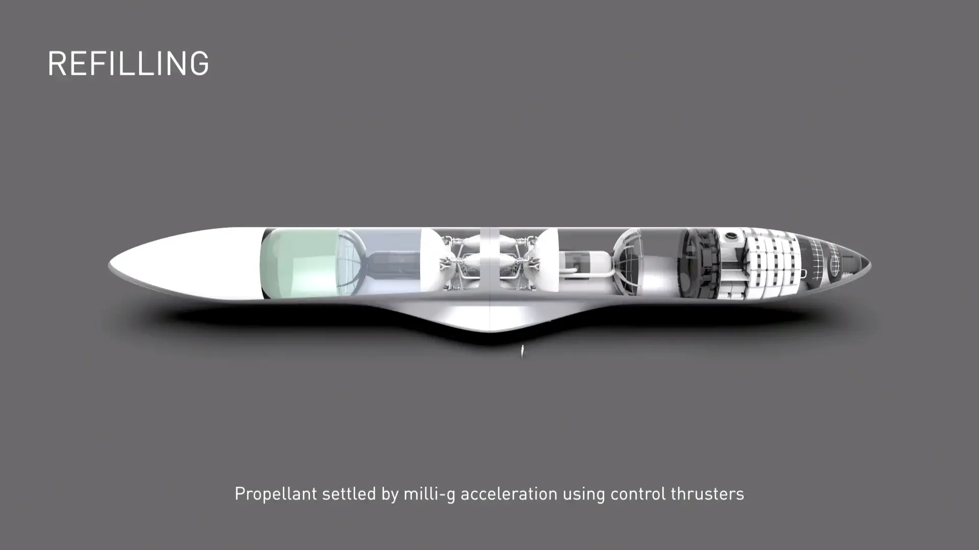 太空加油船则是个非常有趣的设计,它与被加油的对象是以「屁股对屁股」的方式对接,然后轻微地向着加油船的方向加速,燃料就会从两者间的管路流过来。靠着加油船补给的话,SpaceX 的计算是 BFR 本身的燃料就足以前往月球表面再返回,让月球基地成为可行的目标。至于火星的话,就必需要在火星表面有生产燃料的能力才能返回(幸好二氧化碳+水+能量 = 甲烷 + 氧气,所以至少原料是有的),所以初步是希望在 2022 年先送两趟不回返的货运任务去火星,来确认资源与未知的潜在风险。