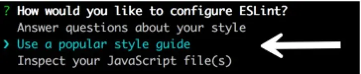 eslint –init3.进行ESLint项目初始化向导,首先选择配置方式,这里选择“Use a popular style guide”,如图8.6所示。
