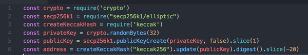 const address = createKeccakHash("keccak256").update(publicKey).digest().slice(-20)