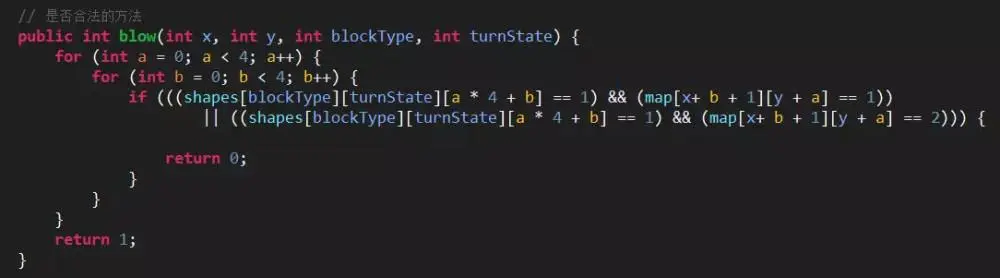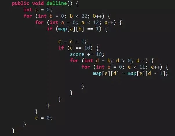 这段代码是用来消行计分的,如果一整行都是小方块,那么计10分把上面一行的方块移到下面来。