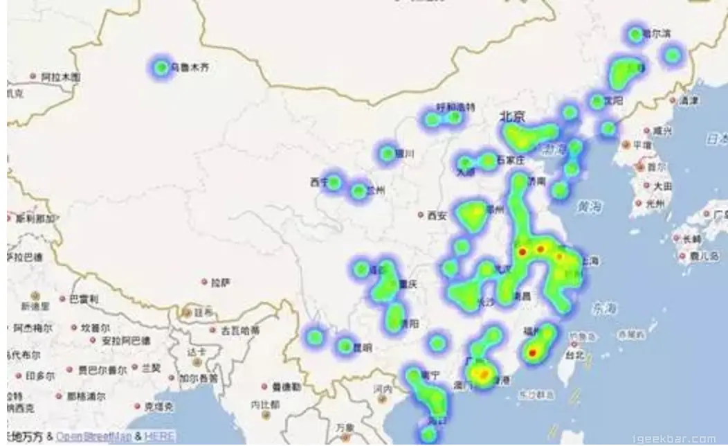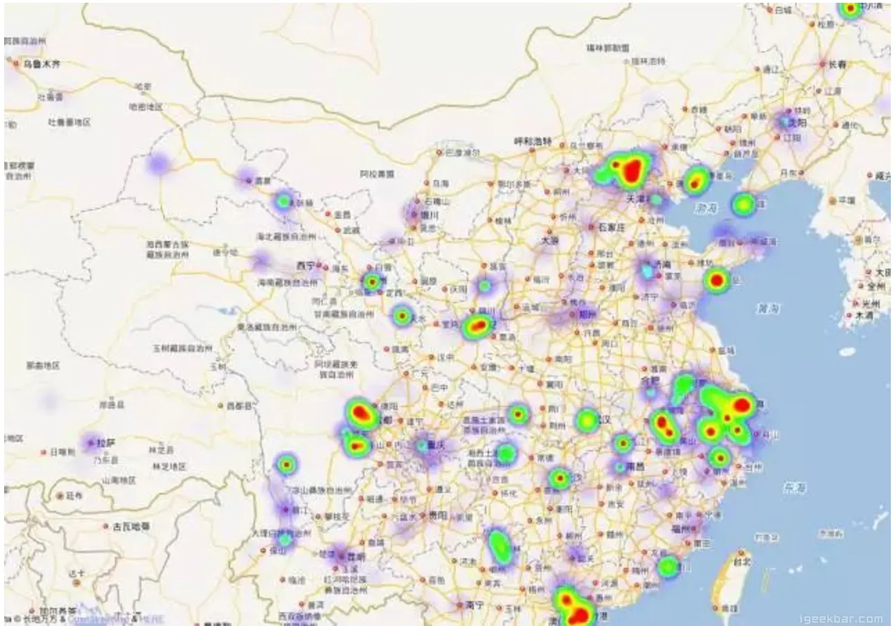 这些地图上很火爆的区域,我想在国庆大概是这样的
