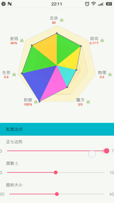 XRadarView is a "A highly customizable radar view for Android". XRadarView 是一个可高度自定义的雷达图控件。