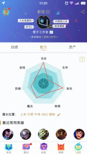 原图是掌上英雄联盟中雷达图的截图: