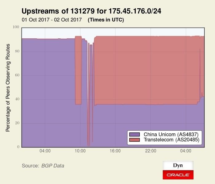 Dyn Dyn的图表显示了朝鲜ISP的新的路由数据