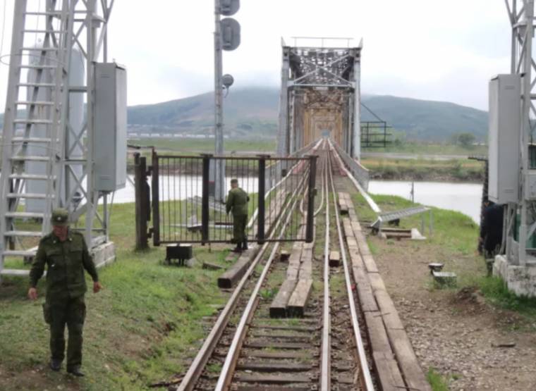 连接朝鲜和俄罗斯的铁路联络线:友谊桥的朝鲜边防哨所。该边防哨所现在还有一条互联网连接,将朝鲜与世界上其余地方连接起来。