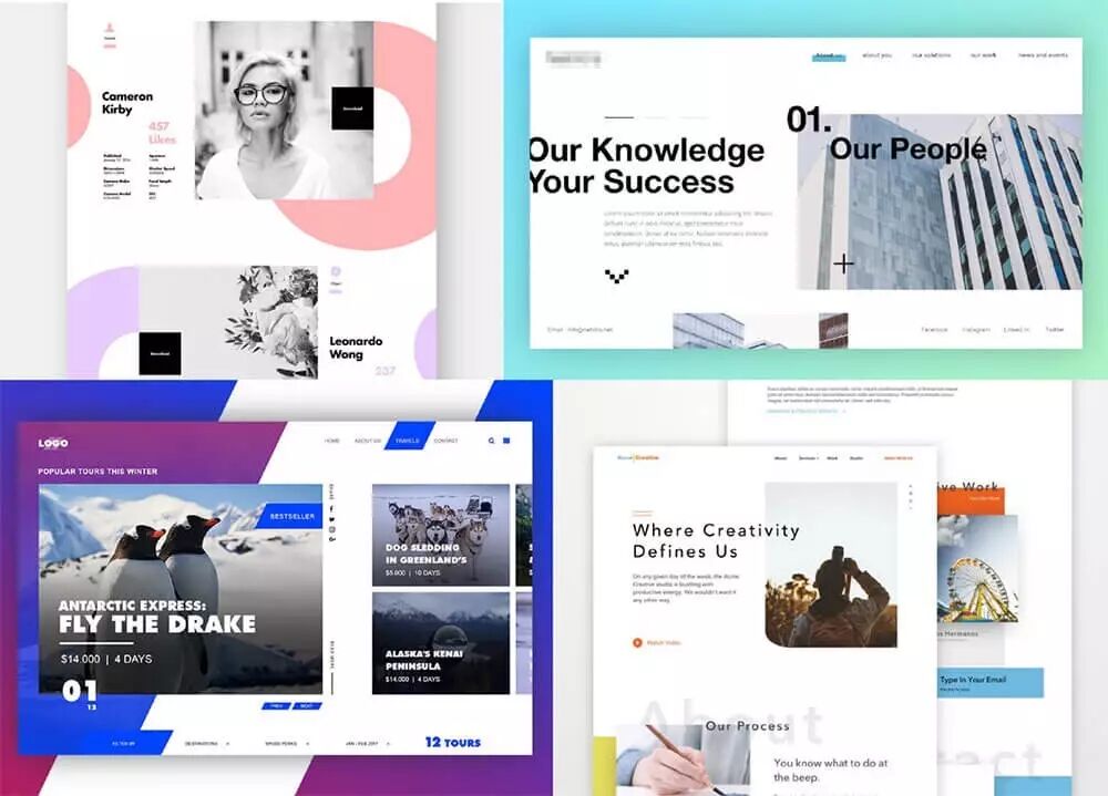 具有创意、独特的设计,这种实验性的布局,在2017年已经开始广泛的普及了。这种趋势能让用户有种有趣的感觉。