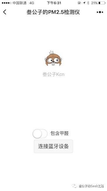 下面我们打开小程序,这里为了让界面不是很空旷,获取了一下用户的头像。然后就是用户的配置,如果用的是攀藤G5S把甲醛的选项勾上就好了。