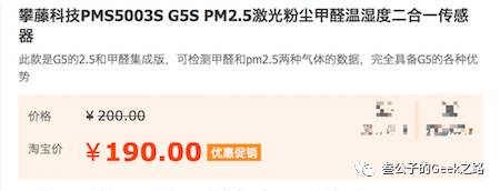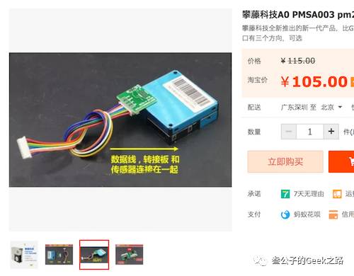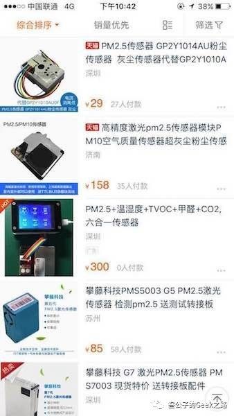感觉这个价格还是有点儿小贵的,都能买个空气净化器了,那么我们再来搜一下PM2.5传感器。