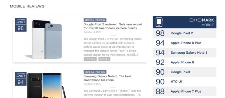 去年 Pixel/Pixel XL 后,两款手机凭借 89 分的成绩,成为了 DxOMark Mobile 数据库中摄像头得分最高的智能手机。虽然后来 Pixel/Pixel XL 的成绩被 iPhone 8、三星 Note 8 等产品超越(也有规则调整的原因)。不过随着 Pixel 2/Pixel 2 XL 发布,两款新机凭借 98 分的成绩再次帮「G」字头手机夺回了宝座。