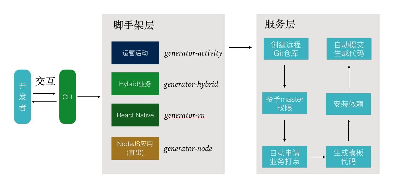 背景: 随着开发团队规模不断发展壮大,在人员增加的同时也带来了协作成本的增加,业务项目越来越多,类型也各不相同。常见的类型有组件类、活动类、基于React+redux的业务项目、RN项目、Node.js项目等等。如果想要对每个项目进行一些规范的约束比如Git提交规范、Javascript规范简直难于登天。所有的这些,只因为缺少一个好用的工程化工具。从项目创建、开发、构建、代码规范检查到最终项目上线,通过CLI可以提升效率,同时保障开发规范的实施。