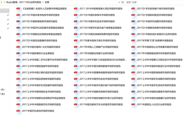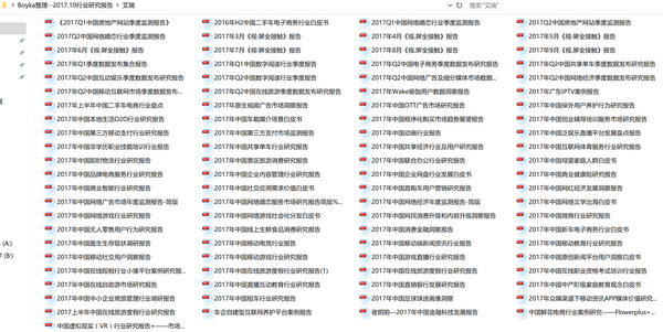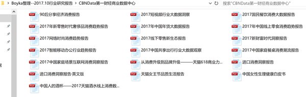 By the way,以往收集的行业研究报告也按获取来源分类整理放在这儿了,方便大家收藏(报告时间为2016年-2017年初,大小1.56G,总量接近400份):