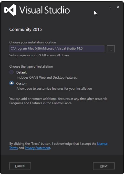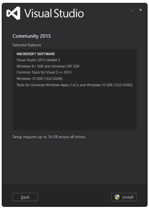 - Visual Studio 2015 Community Edition Update 3 w. Windows Kit 10.0.10240.0