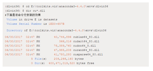 这个问题并不是因为浪费硬盘空间,而是安装的 cuDNN 版本和我们安装在 c:\toolkits\cuda-8.0.61 下的 cuDNN 版本不同,因为在 conda 环境目录下的 DLL 将首先加载,所以我们需要这些 DLL 移除出%PATH% 目录: