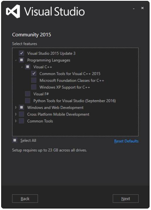 - Visual Studio 2015 Community Edition Update 3 w. Windows Kit 10.0.10240.0:用于其 C/C++编译器(而不是 IDE)和 SDK,选择该确定的版本是因为 CUDA 8.0.61 所支持的 Windows 编译器。