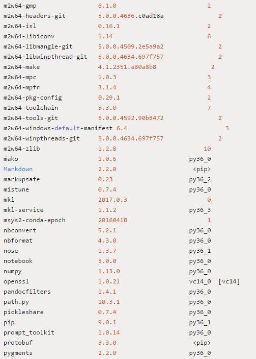 下面是我们将在 Windows 10(Version 1607 OS Build 14393.222)上配置深度学习环境所需要的工具和软件包: