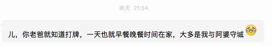 今天虽然存在了淡淡的离愁,但是好歹是为了下次的见面做铺垫不是?所以整体上我还是开心的,因为好歹吃上了百景园一楼的毛细牛肉面了。爽歪歪~~ 突然有点想家了!估计是因为最近我爸妈得知我读直博了所以很开心,然后我爸爸开始放浪形骸(证据如下图)。不仅如此,一天给我不下八个视频电话,虽然我至今才接了两三个,但是面对我爸的毫无松懈的攻势,我还是有点吃不住啊。不过隐约家里有活力了不少了。大抵是压在他们身上的一份重担(我?我!)即将消亡吧!希望我博士期间可以好好地念书,然后最起码解决自己的经济问题,最好是往家里打钱。总结一句:想家了,不如晚饭加个餐,夜间吃个关东煮犒劳下自己吧(我会告诉你我是因为懒和不想挤车才没回去?)!