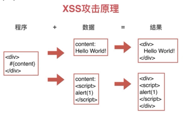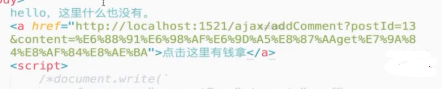 反射型:url参数直接注入;攻击者将代码通过url带过来,页面直接显示这串代码。