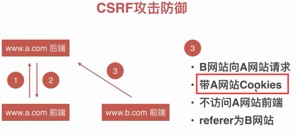 CSRF利用了用户的Cookies,攻击站点无法读写Cookies,最好能阻止第三方使用Cookies。