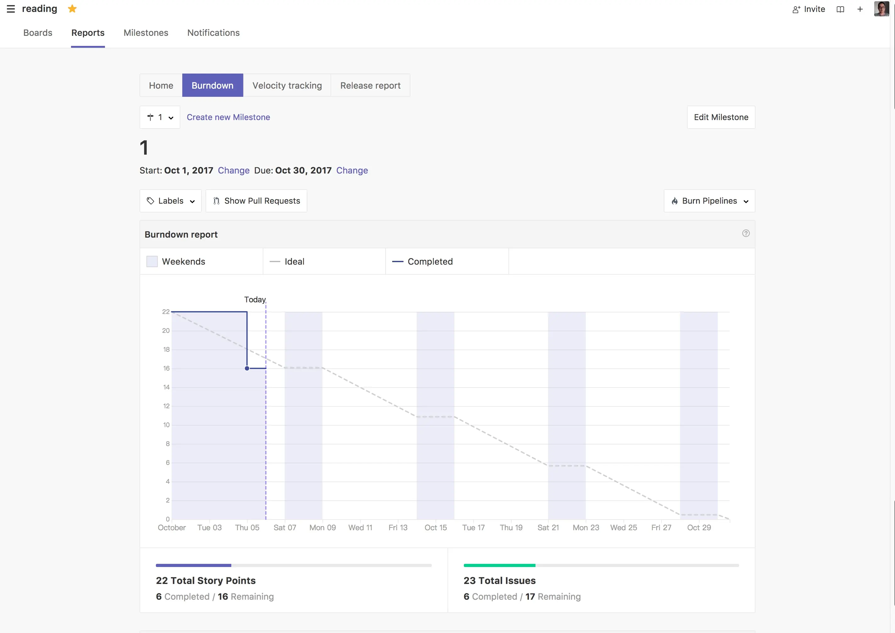 但仅仅只是添加一个 Issue 还不够,这时候还需要将这个 Issue 加入到指定的 Milestone 以便利用 ZenHub 的图表功能。