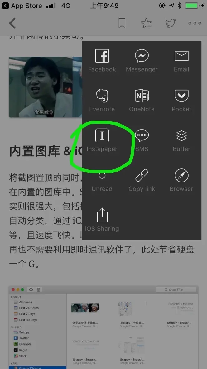 通过 Feedly 方式很简单的,只要将喜欢文章分享到 Instapaper 上即可。