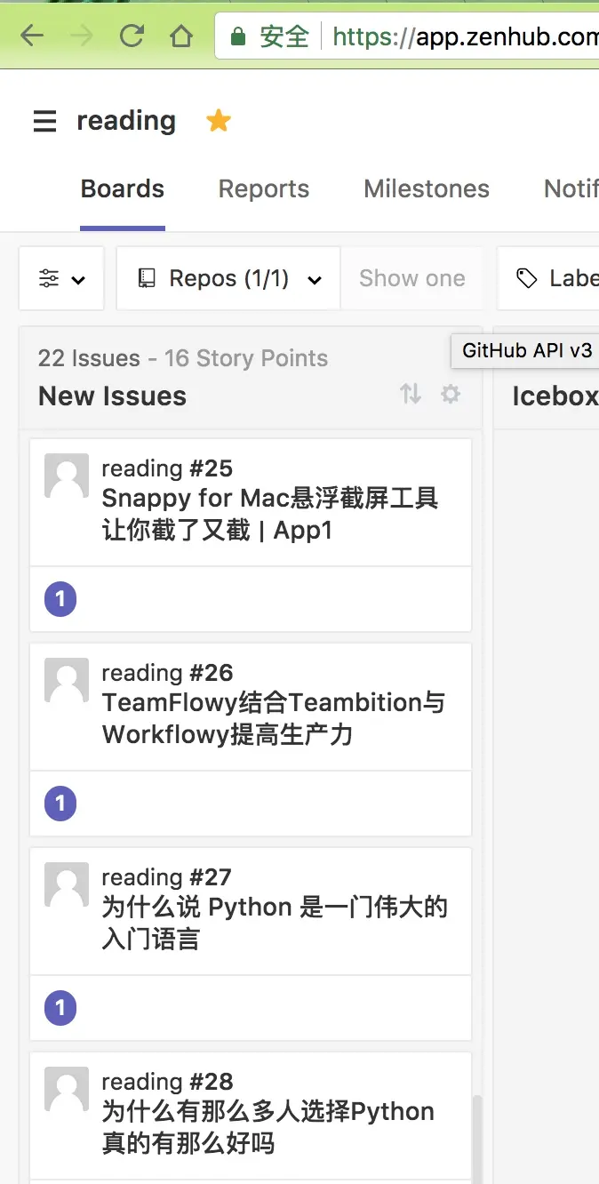 到目前为止我们算完成了「稍后阅读」文章的第一步了。但这不是我们的目标,我们的目标是:当在 Instapaper 阅读完一篇文章后,对文章进行归档,然后更新 GitHub Issues 来 close 对应的 Issue,这样才会利用到 ZenHub 的统计视图功能。