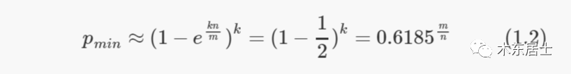 如果给定 m 和 n,当 k 取以下值时,误判率 p 的值最小: